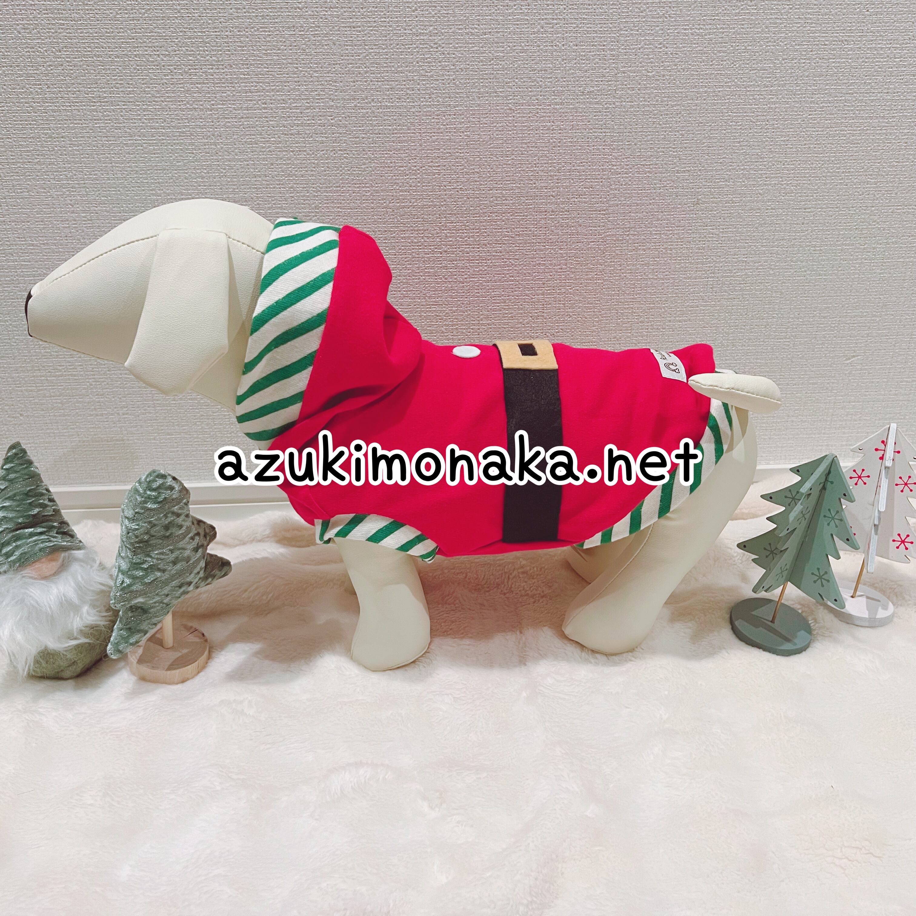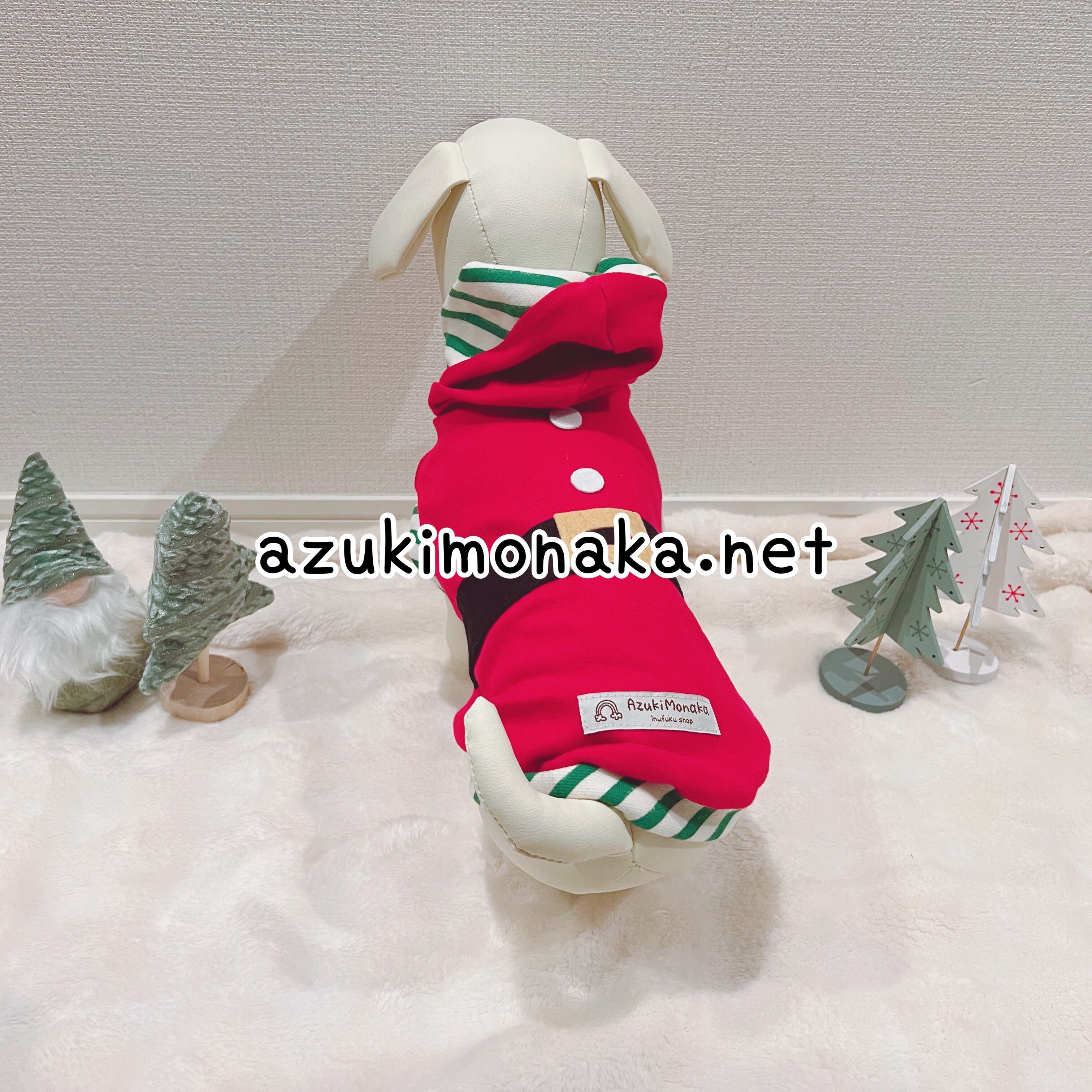 赤いフードが付いた愛犬がサンタさんになる素敵なクリスマスウェアです。