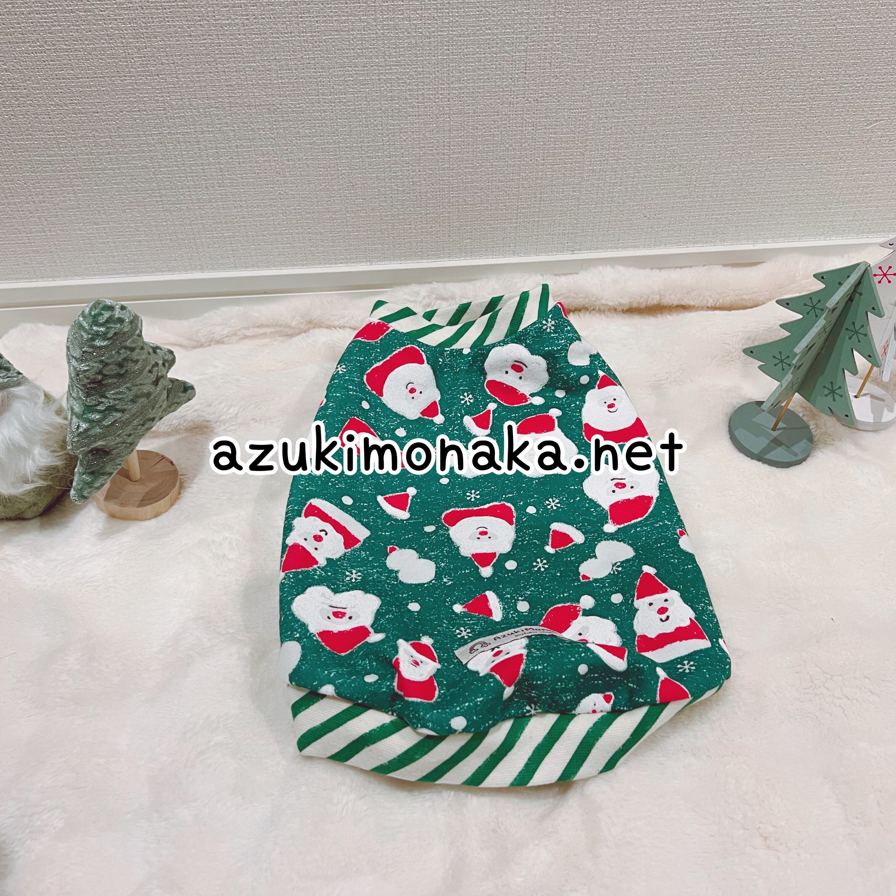 可愛いサンタクロース柄がプリントされたグリーンのタンクトップです。