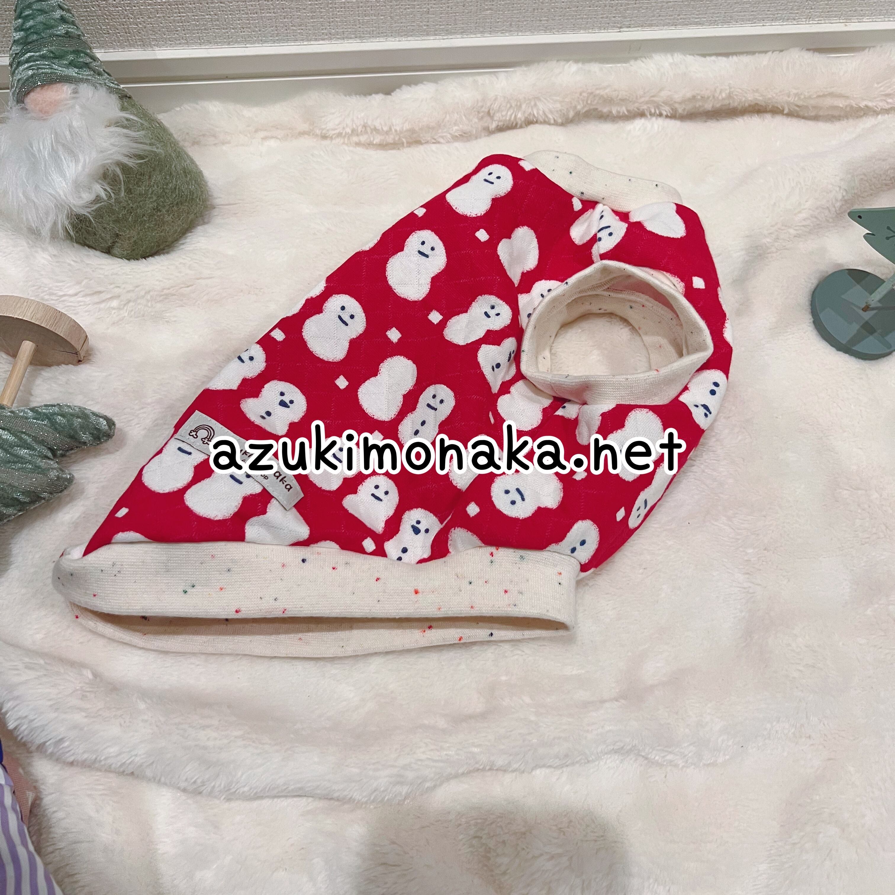 【PMサイズ】バックオープンベスト 雪だるま 赤
